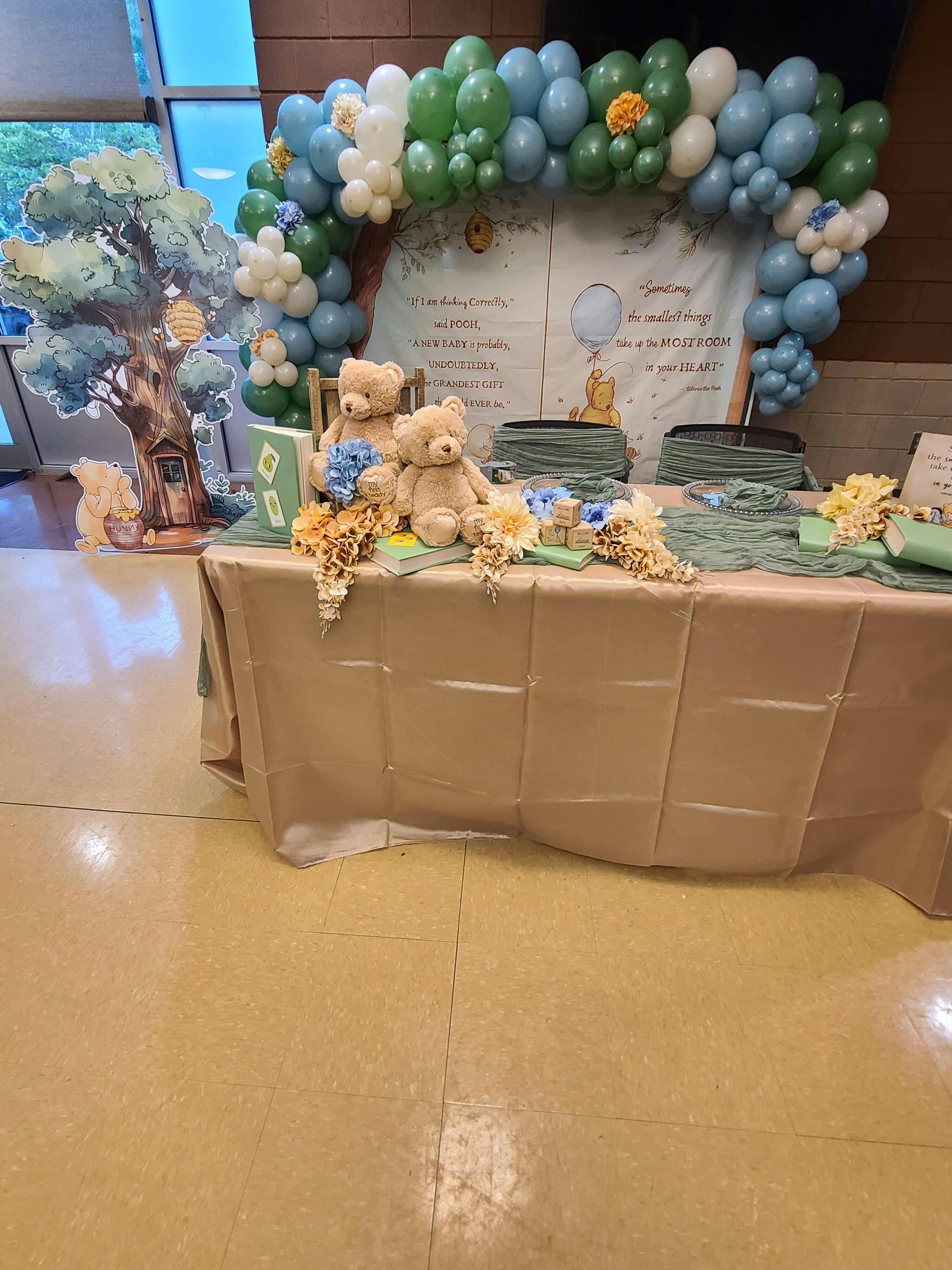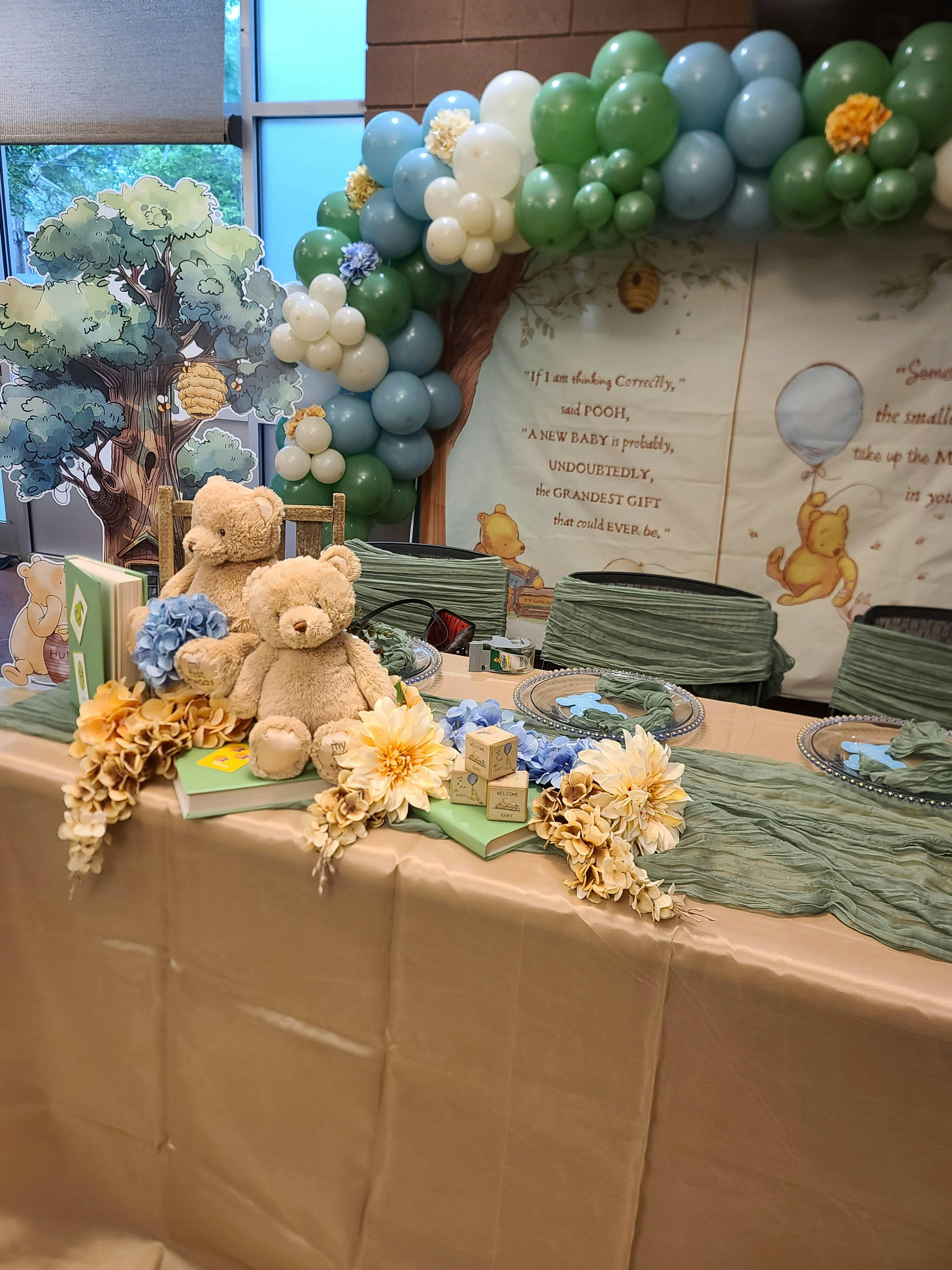 Bring the charm of the Hundred Acre Wood to your celebration with this Classic Winnie the Pooh Backdrop, featuring Pooh Bear near a tree with his pot of honey, surrounded by gentle bees. A perfect setting for a baby shower, birthday, or nursery-themed event, this soft and nostalgic design captures the heartwarming magic of vintage Pooh in beautiful pastel tones. Whether used as a photo backdrop, nursery wall piece, or party focal point, this piece brings timeless joy and whimsy to any space.